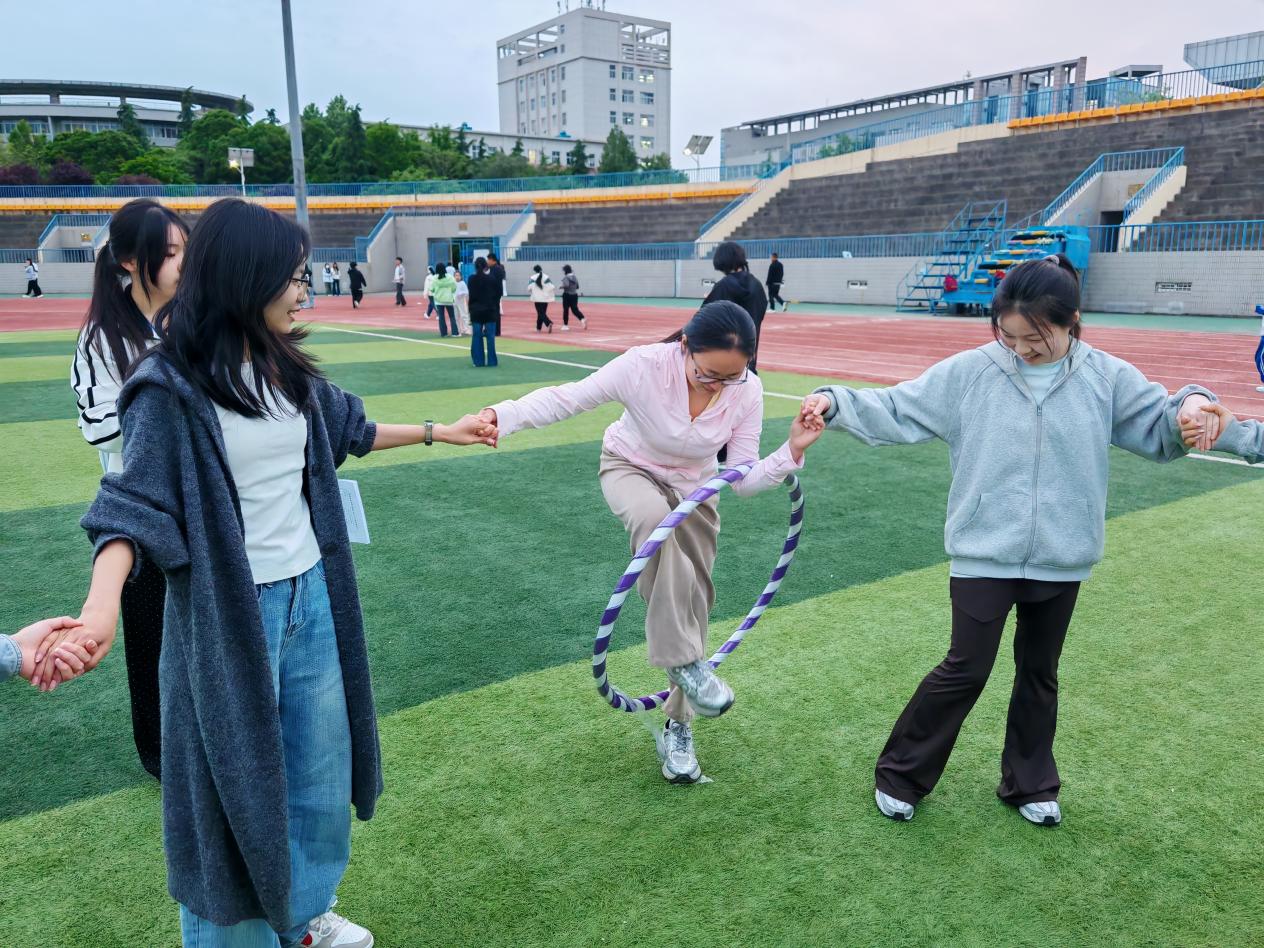 启动仪式后,趣味团体体育项目同步开展。一圈到底、托球跑接力等趣味赛事兼具协作性与趣味性,各学院学子同心协力、奋勇争先,赛场氛围轻松热烈,生动彰显出青年学子朝气蓬勃、团结奋进的精神面貌。